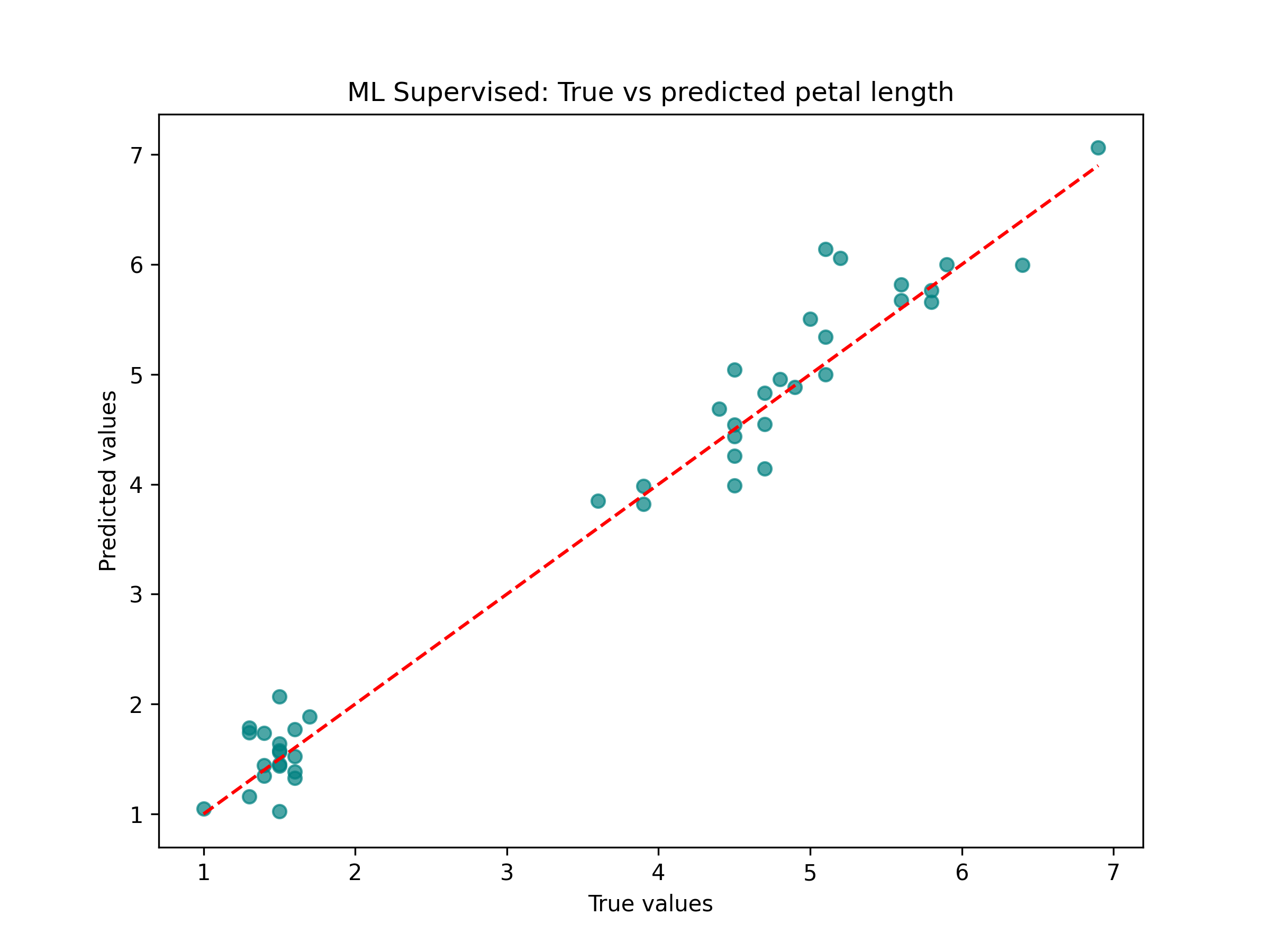 The image in Figure 14 comes from a selected website, and shows three species of flowers that look similar but differ on the lenght and width of their petals and sepals. First I performed an unsupervised learning method. I used a Google Colab code to load the data, standarize it, and apply a K-Means Clustering (with three clusters, knowing that we want to identify three species of flowers). I then plot the PCA results in Figure 15, along with comparing resulting clusters with true labels, and observe that one species (cluster 1) was identified correctly (with 33 samples of label 0 setosa), but the two (versicolor and virginica) others were not, so K-Means (PCA) has some limitations for this analysis.